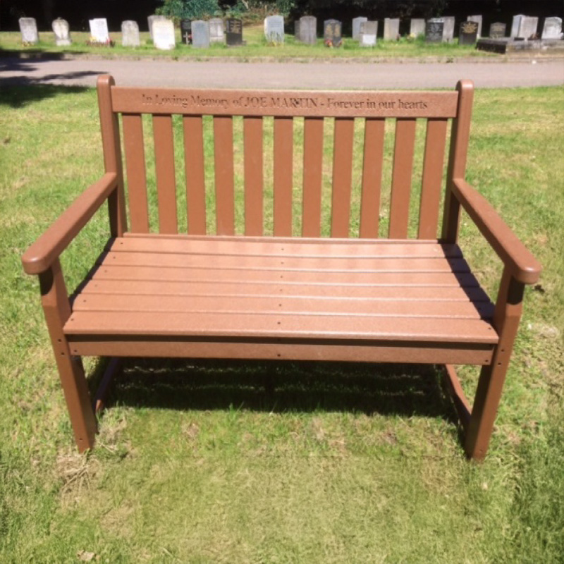 Available in a rich mahogany or teak finish, and in 4ft or 5ft widths, each bench can be personalised with either a carved inscription or a fitted plaque in brass or stainless steel.