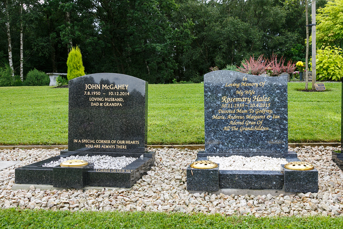 Traditional in style and dignified in appearance, these memorials provide a personal resting place marked by a classic granite headstone with surrounding kerbs. Each individual plot measures 60cm by 60cm, with the headstone reaching a maximum height of approximately 22 inches (56cm). Plots can accommodate up to two sets of ashes, which may be buried loosely or within an urn or biodegradable container.